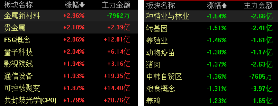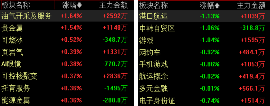 盘面上,算力产业链走强,CPO方向领涨;黄金珠宝、创新药、稀土永磁、量子技术、IP经济概念股活跃;离境退税、反关税、半导体、白酒、消费电子题材走弱。